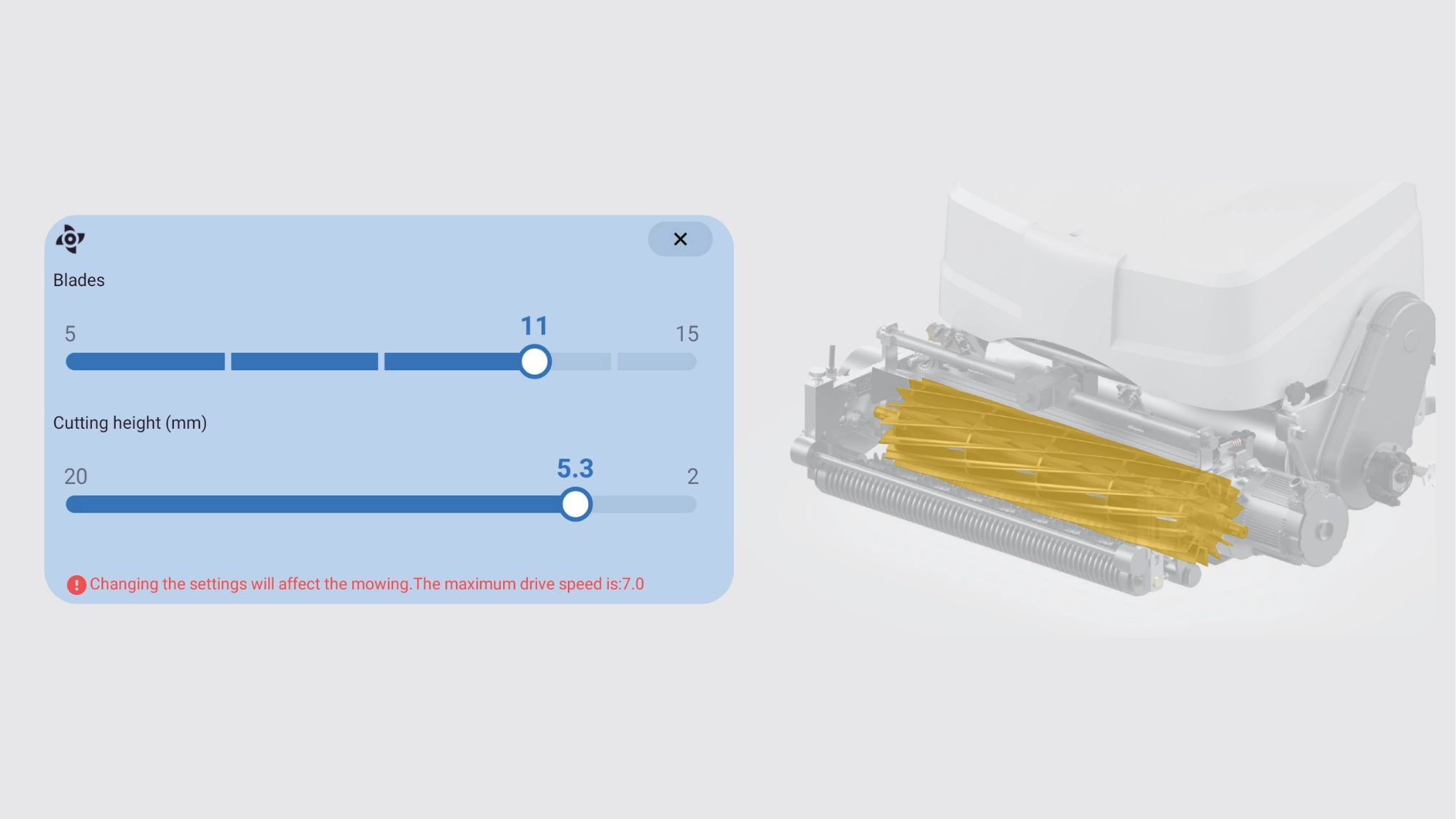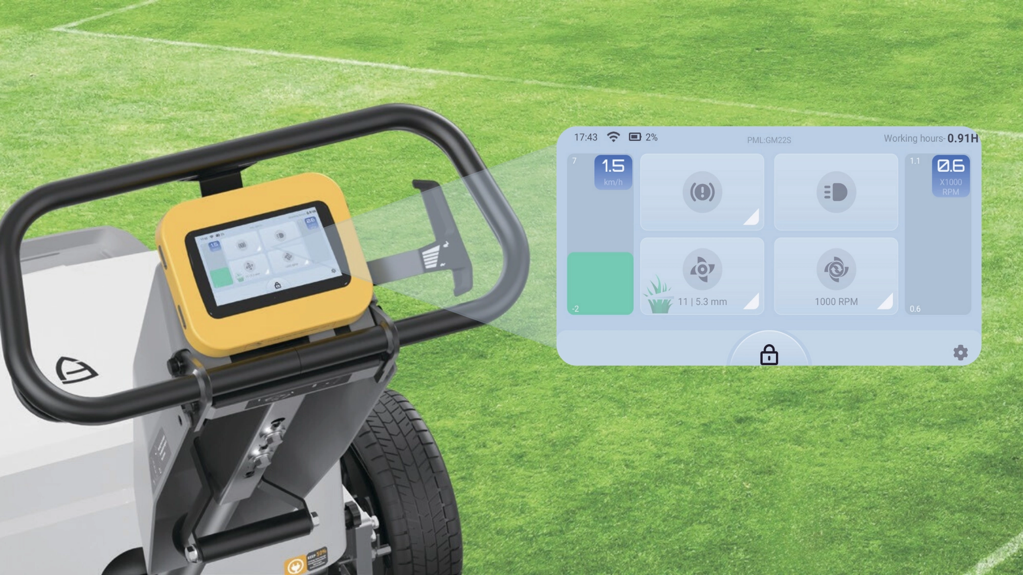 Adjust speed, mowing frequency, and blade sharpening in seconds—right on the screen.
