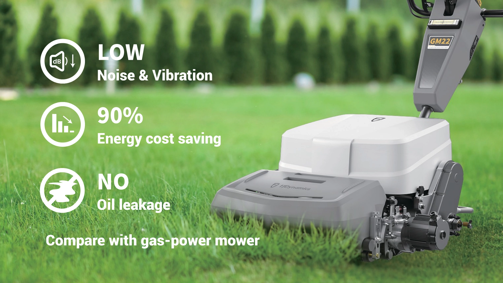 Powered by a pure electric drive, GM22S delivers a quieter, smoother mow with no oil leaks and significantly lower running costs than gas. A high-capacity 2 kWh battery supports up to 7,000 m² per charge—so you can cover more ground in one run, with less maintenance and less interruption.